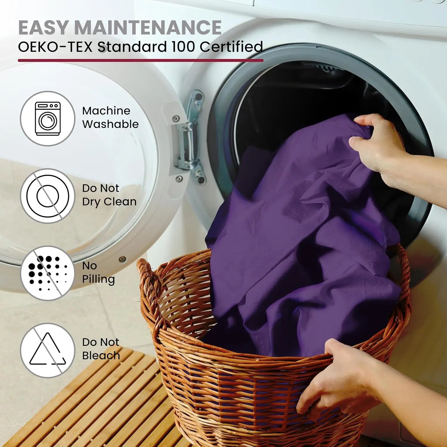 Easy Care: Designed for easy care and low maintenance, this fabric blend allows for hassle-free washing and drying, making it perfect for those who want quality bedding with minimal upkeep required